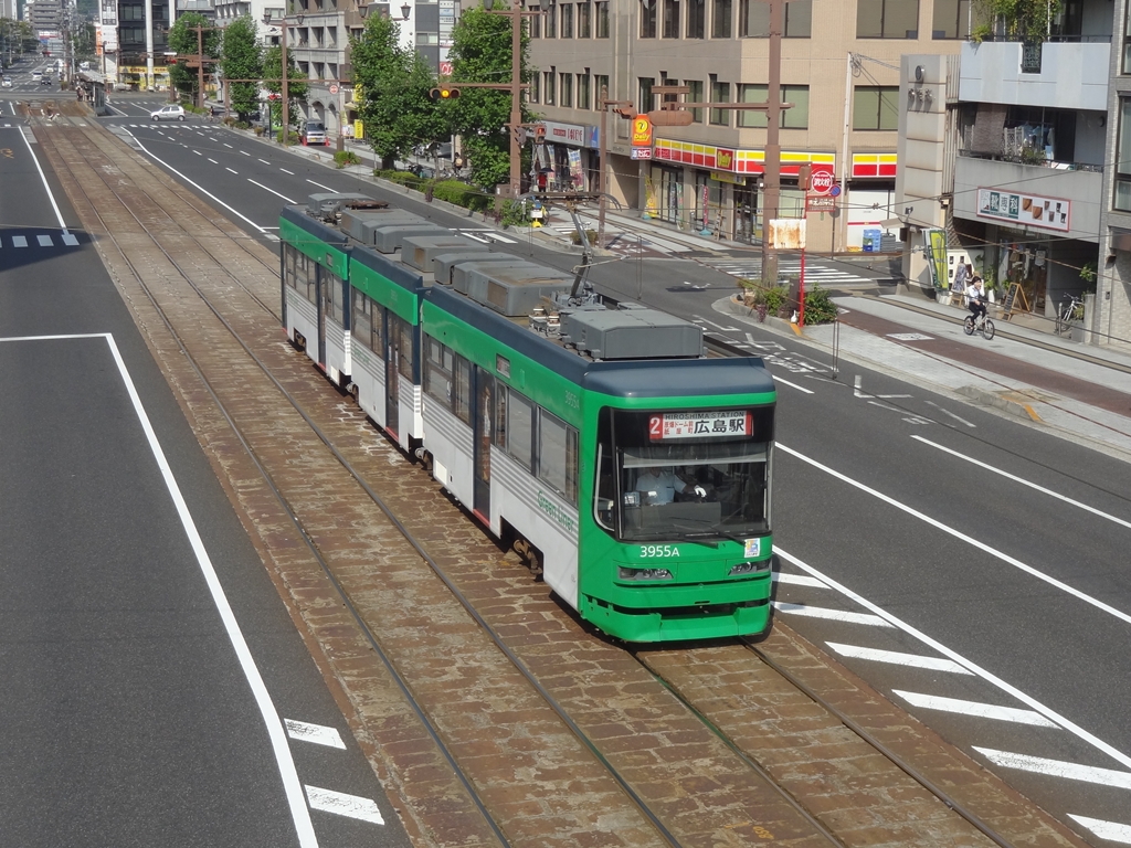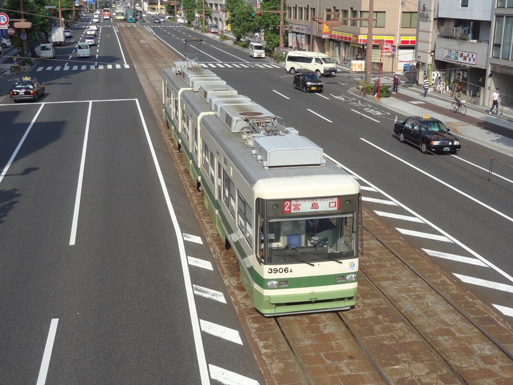 1900形は千田にも江波にも配置されており、800形や700形と違い白島線にも入るので、2号線以外の全ての系統の運用に入る唯一の単車です。
