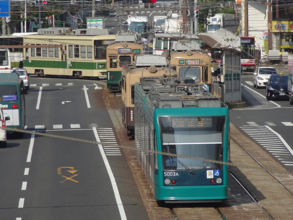 後にやってきた5003号も加わって、十日市交差点が少し渋滞してきてました。