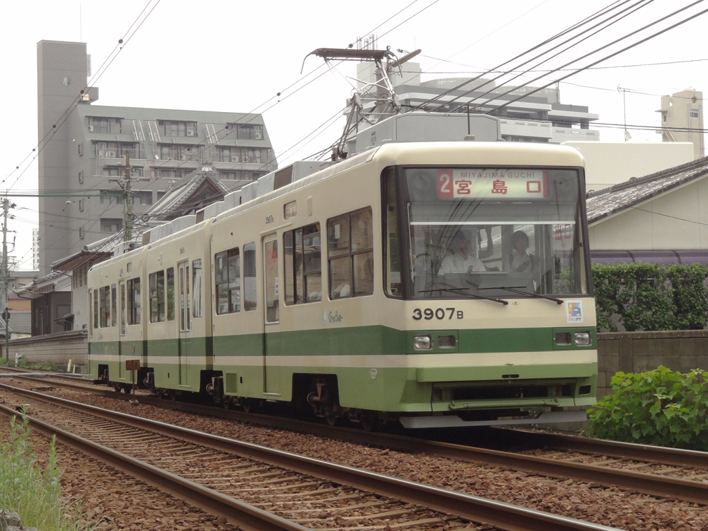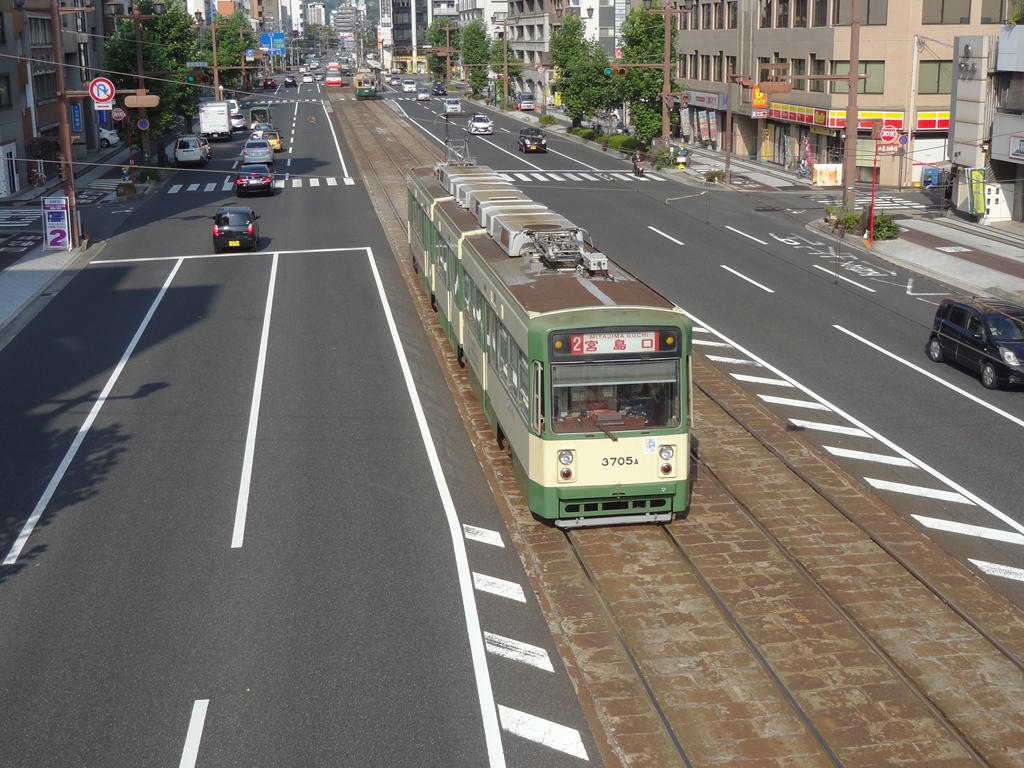 昔は宮島線と市内線を直通する車両として活躍しましたが、今は市内線専用です。