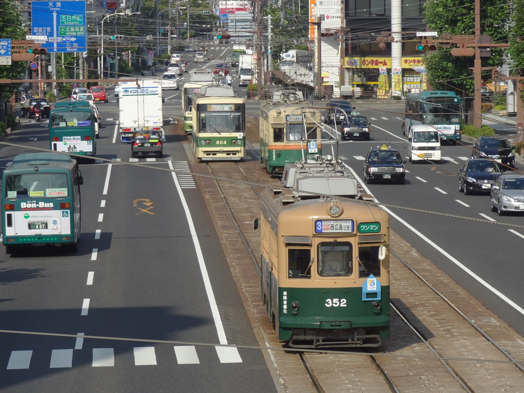全車が江波車庫に所属しており、6号、7号、8号、9号線で運用されてます。